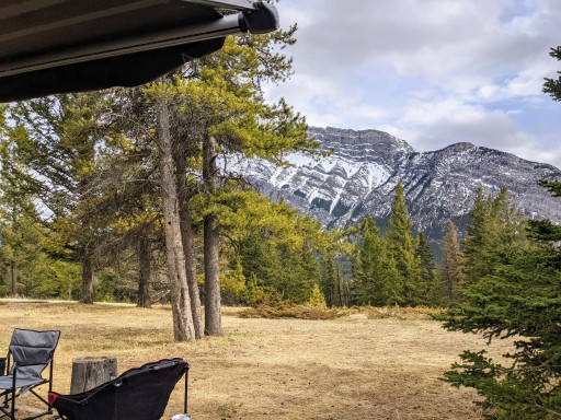 This is an odd campground. You park in the road and have access to a little patch with a picnic table and fire ring. Next time, I will take my chances without reservations. Lake Louise has overfill RV camping if I get desperate.