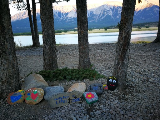 A beautiful spot with in ground rock fire pits. We came in mid August, it was a very calm, clear evening. Camped on a hill next to the lake. The sunset reflecting on the water was magnificent. So many stars at night. Very, very cold overnight so dress warm! Not very well sheltered so if it's windy I would not recommend this spot if tenting. Bring your own firewood and no bathrooms!