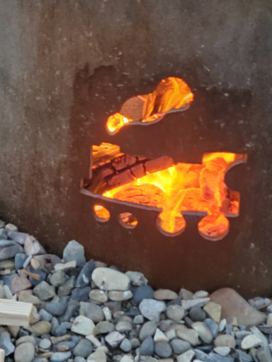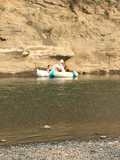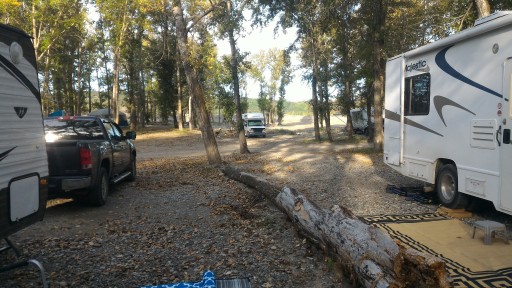 When you enter, still see how the flood damaged the campground (where we were) making it more like a gravel pit with a scenic hill backdrop. The other end has grass and the entire grounds still has lots of trees. Power is only 110 (house) so limited what you run. The river is nice and clear with a beach area. The low star rating for me...price vs grounds and hook ups. At $41 a night, heavily rocked area...no.....but the dog found places to lie down. In time it will come back.