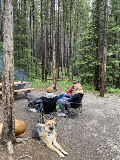 Large , private campsite with fire pit and table. Hook up water and electrical. Beautiful and peaceful. Be aware of active grizzly bear in the campsite and travel in groups, keep the sites clean and food stored properly.