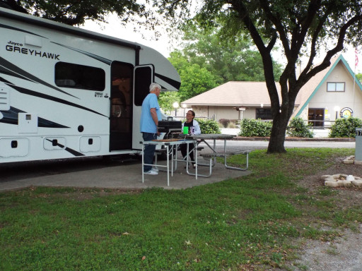 Choose a site in the middle campground. Best ones back up to the creek. Upper campground sites are close. Lower campground sites are small, not level, and poorly arranged. The website does NOT tell you that no tent is allowed to be on the site with your RV. So you cannot let the kids have the tenting experience. Bath house is rustic but adequate. The pool is currently closed. Ice is available but bring your supplies. Water pressure in the shower is almost painful, so use a regulator on your rig.