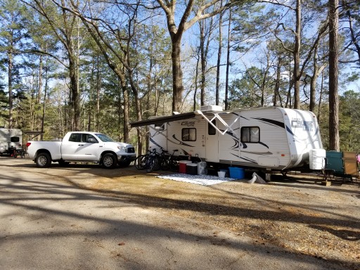 Pretty decent campground. Our site (D77) was pretty nice with a fairly level but narrow pad. some sites have full hookups, but ours was water/electric only. Several other sites looked like they could use some TLC. There were lots of well marked and mapped hiking/biking trails, playgrounds, picnic areas, and a swim beach. Our biggest complaint was the price. In an effort to capitalize on their proximity to the University of Alabama, they jack the prices through the roof on GameDay weekends. After taxes and fees, our spot was nearly $90/night on Friday and Saturday. Our fault for not checking first, but it seems like the locals know. The park was empty except for the campers that have seasonal GameDay passes, and the weather was perfect for camping. We will make sure to check the football calendar before we plan another trip here.
