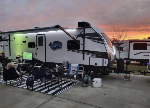 Driving north, stopped here for one night with our 25' Itasca sprinter. Staff was incredibly friendly and accommodating for our after hours arrival. CLEAN restrooms, LARGE showers, laundry onsite, and they're adding sites. Ours was new and it looks like they're adding more. Looks like there are close to 40 right now. All big rig friendly and level. Gravel, some with concrete. Yes, the roads are a bit windy getting here, but not too bad. I've seen much, much worse. Not a place to stay for a week with kids (no pool) but really superb for what we needed. WiFi reached out site fairly well.