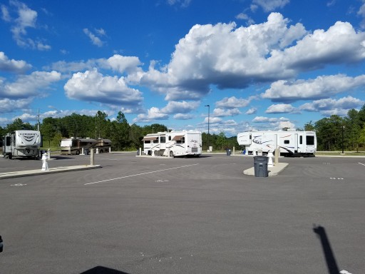 Cement lot(s) with full hook up. Google the Hoover RV Park and use the online service or pull up and register at the entrance. Many sites right now appear to be used by construction but with over 170 sites there are many available. We choose site 6 as it is close to the Finley Center and RV campers can accessthe center which has restrooms available 6am to 9 pm (when the walking track is available)-it does close on Sundays at 6 pm. The area at the Hoover Metro Center is great for walking and our four legged camper enjoyed our explorations. We were able to access and use the WiFi easily. While not a “campground “ we would not hesitate to return. You are close to Birmingham, easy access to groceries and the nights are very quiet!