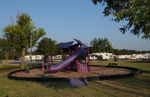 Beautiful RV park. All pull through slots, nicely groomed and laid out with equal spacing, each with it’s own concrete patio pad and table. Did not use their facilities. Lovely concrete walking path around the pond - all level. Good Sam discount. Call ahead - they were fully booked on a Wednesday night, but had a cancelation for the one night. No pool, but there is a playground. We are walkers, so just right for us. May 1st, 2019