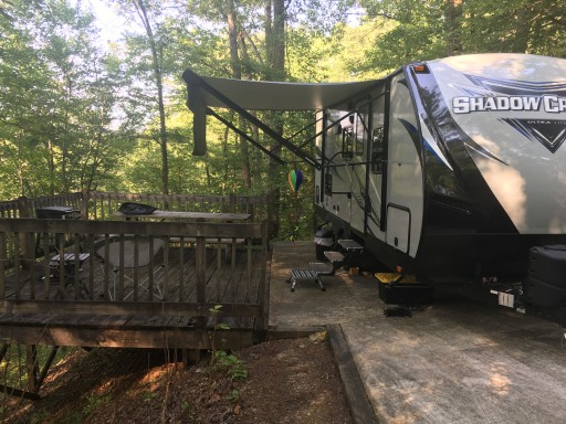 This place is great for camping. Concrete pads with a wood deck and gravel fire pit/barbeque area. Free firewood. Deer and other wildlife can be seen in the woods. Had tv and cell service. Nice hiking and walking trails. You do have to hike down to the lake but I'm 60 and out of shape but it wasn't a big deal.
