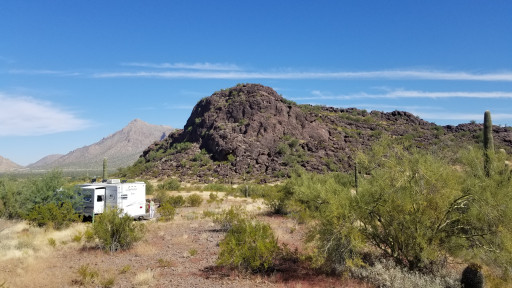 Silverado RV Park. This is a nice enough park. Not any trees for shade. A really nice clubhouse, swimming pool, two pickleball courts, restrooms, showers, workout room. Definitely no extra frills. Was disappointed they did not have Wi-Fi available for residents for free. This was the only park near Coolidge and Florence that had any availability during the winter season. Seemed like they didn't necessarily want visitor contact at the office. Electronic check in and out. You make your reservation and they send you the site # and gate code. Semi level spaces (had to use all our boards to lift up the front end). Gravel and weeds throughout. Easy on and off I-10. Freeway noise.