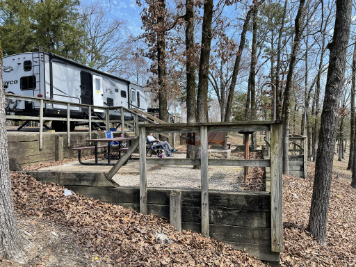 We stayed on campsite 17 (which is pretty much on its own near the boat dock). Nice shaded site. It was a little difficult to get into but we managed. Bathrooms were kept clean. No roped off swimming but not very deep. My teens had fun in the river. We will be back.