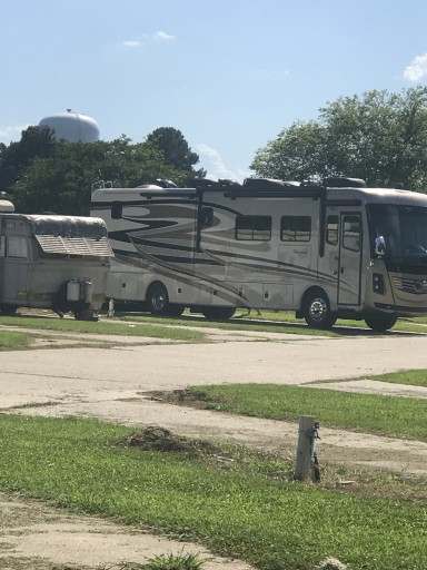 My husband and I stopped at Fair Park in Hope Arkansas for 3 nights. This park is actually the Fairgrounds for the City of Hope with several areas around the fairgrounds set up for RV's. The sites are grass, no concrete or asphalt pads with water and electric for 30 and 50 amp service. We were fortunate to park under a couple of large trees however most of the sites do not have any trees or shade. There is a nice play ground for children to play that is shaded, golf frisbee and a 12 acre lake with a wide sidewalk to take a stroll on. The park office will provide a key for access to their bathroom and showers for after hours. The showers are small and show some age but are clean. The rate for these sites are $25 a night.
