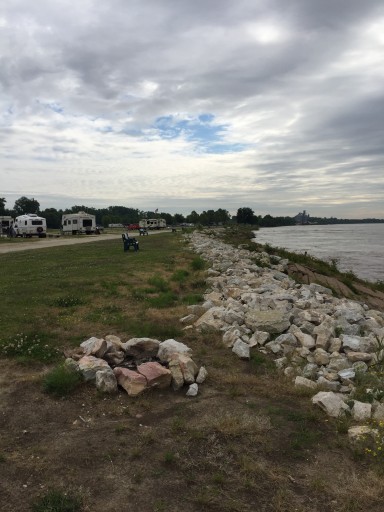 There’s a reason why this place has all these comments. It is worth every penny. Don’t hesitate in staying here. The barges are great too see. Very level spots. We had #95. There are no trees from spots 90-100 but that isn’t a big deal. You’re on the Mississippi River. Trees aren’t necessary here. We’ll return here in a heartbeat. Clean and a very big grass area as in football field size or bigger. Benches along the river to enjoy whatever. This place is huge but quaint.