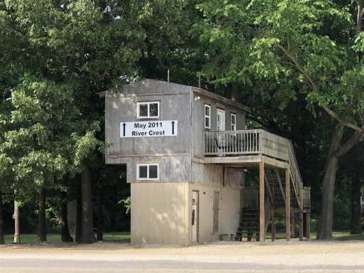 This place has been under water due to recent floods and is still not totally dried out, so we had to deal with some mud since it rained while we were there. Our concrete pad sat right on the river so we enjoyed watching the barges go up and down the river, but there was no shade and the park looked run down. It is off the beaten path which is nice. Only night sounds we heard were the barges on the river.