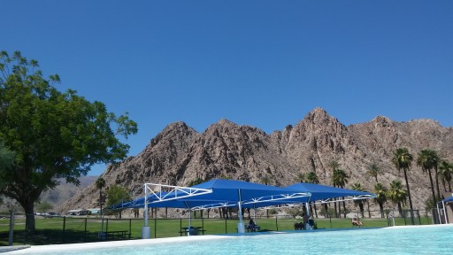Ok. Just dirt parking. Trees are trimmed really short so there is no shade. Equestrian side has full hookups, but no shade and is next to a gun range. RV parking on opposite side has no sewer hookups but there is a dump station on site. Lake is fishing only. Park is nice a green with playground equipment. Pool is closed now but when we went was nice. You have to buy wrist bands at entrace and its only for a 2 hour time period . They do have 3 sessions per day when open. $3 each. Staff was less than helpful with this. When not windy it is calm and peaceful. I understand gun range can be a problem, and loud but we did not have an issue. Went 9/2016