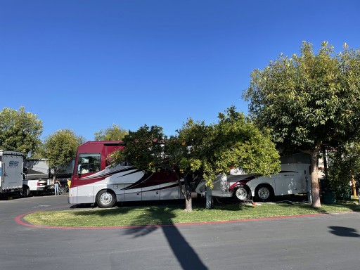Stayed here for a week over Thanksgiving and couldn’t ask for a better spot. We have a 45’ motorcoach and we’re in a preferred back-in spot, which I think is the nicest one they have. There are pull-thru sites but they didn’t seem as shaded. The service here is impeccable, they will help you get to your site and get backed in, they pick up trash for you, maintain the sites really well, etc. It’s a very high end rv park. We have two little boys who love to swim, so the heated pool is a big bonus in November. Water pressure is great, hookups are on the driver side and you get two water hookups. The only complaint is that the WiFi is very slow, at one point it was 0.06 mbps. It got as high as 6.5 mbps. Laundry facility is great, the store has everything you “need” and there are plenty of stores and restaurants nearby. The park is pretty quiet at night, even though it’s so close to I-5. Getting into and out of the park was relatively easy. We’ll definitely be back!
