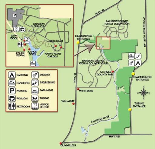 As we were told by the ranger at check in the actual spring is located 1.5 miles away from the campground.... the campground is just a place to park your camper and sleep, nothing special-the ranger's words not mine. Rainbow Spring park is very nice and worth the visit. The campground is forgettable... during our stay the dump station/sewer wasn't working and they didn't know when it would be fixed. None of the showers had shower curtains. The handicap shower in the men's bathroom was taped off. The washing machine was broken. In a effort to "save trees" they had no paper maps of the park and told us to go on line and download a map of the park... only problem was there's no internet in the park, regardless of your provider. It's not that it's slow there's none. The bathrm near the tent sites wasn't working, and is said to be under renovation but no one worked on it during our stay. On a positive note the sites are spaced part for privacy and are reasonably level.
