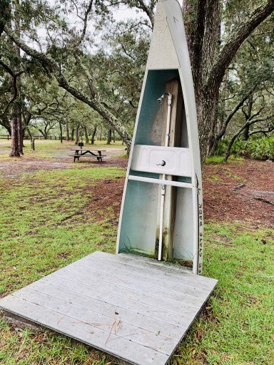 Park is in the middle of a palmetto scrub. Women's restroom is on the side of the woods, no security. The bathrooms were mostly non functional. Two of the three showers had no water. The dumpster had something that smelled like a dead animal in it, that wreaked all over our site.