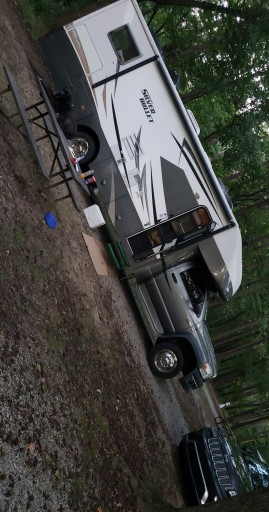 Beautiful setting, quiet. Weekday after Labor Day, so had RV Campground to myself. Electric with sewer dump sight available. Water pump in mid Campground. Paved sights. I do not recall any drive through. Grounds well kept. HOWEVER, bathrooms although stocked with paper, were filthy. Not flush and some full.