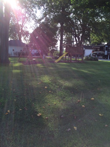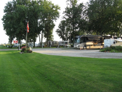 Love the place for once it was level. Found a ripe tomato on the ground had it with salad. Lots of places to sit and glide in gliders or rocking chairs. Just like home not over crowded. Not a parking lot RV park.
