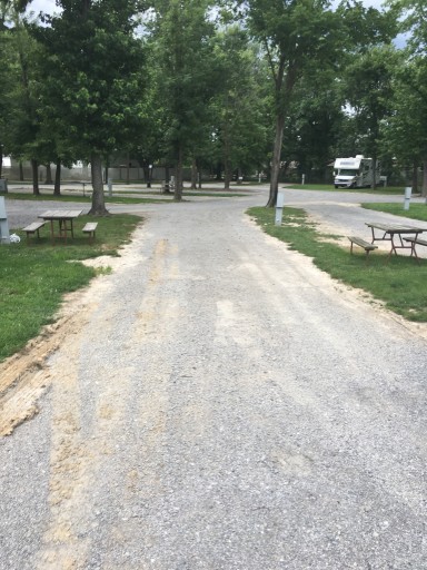 Level sites. Easy pull throughs. Convenient to I 57 but there really wasn’t much highway noise. Clean and well kept.