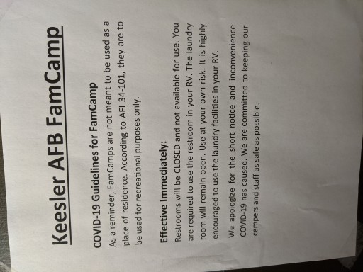 I usually like staying here when we're in town but this is ridiculous! I understand closing the bathrooms but don't be snarky about it. The people in the office have zero clue about how big rigs need bigger spaces and they don't care. Don't know if we will be staying here again.