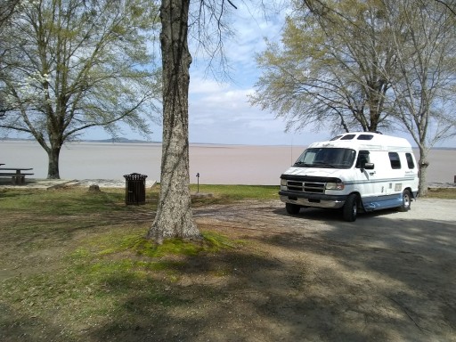 Very nice spot on Grenada Laeke in MS. Newer restroom with running water in sink and drinking fountain, also flush toilets. Central water spigot. All sites on water. Small pulloffs, only smaller RVS, mostly for tenters, gravel tent pads.