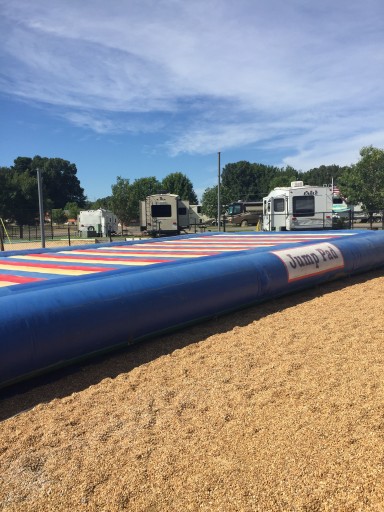 Stayed a couple nights. Concrete extra large pads. We were right by office so we were close to the pool. Pool was good size, clean enough, and fun for the kids. Laundry and showers were excellent. Grounds were immaculate. Best campground weve seen for kids. Oh yea, and inflatable water slides were a hit.