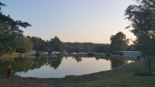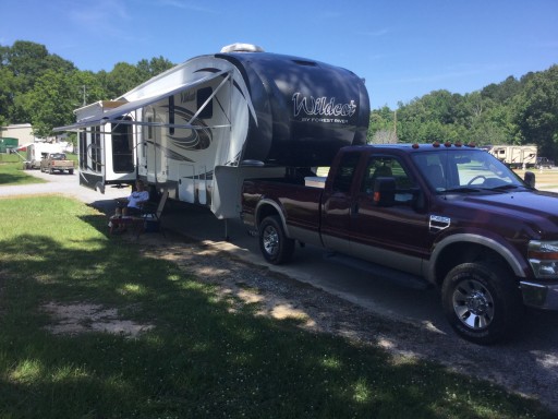 Stayed a week in 37 ft. motorhome. Staff was friendly and very helpful. Sites are paved, some have waste in center of pad, most have waste and water at rear of pad so bring extra hose, power is good, no cable or Wi-Fi. Plenty of shade, great place to get away. Only negative is dumpsters are driving distance away and not convenient to dumping on way out. Back in sites are easy to get into and room to detach car and dolly. Don't leave food or trash outside - saw fox, racoon and deer, they stay clear but nocturnal invitations are probably not a good idea.