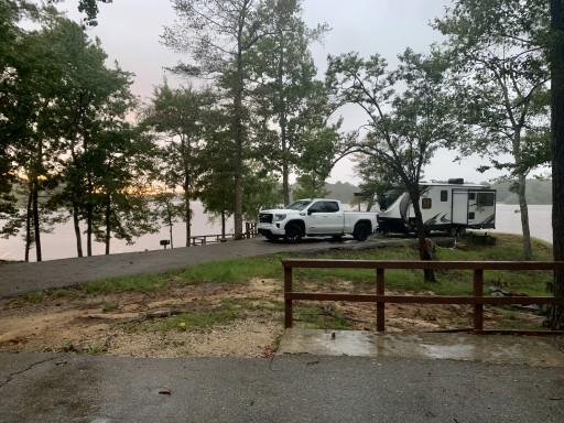 Nice staff. Roads are narrow with no shoulder. RV sites are very narrow, difficult to back in, unlevel, and most have a high drop off. If you're not careful and go off the side, you're going to damage something. The lake is nice and great playground for kids. Recommend for day use. Camping is pricey for what you get. We're driving the extra 20 miles to a Corp park with $18 level sites.