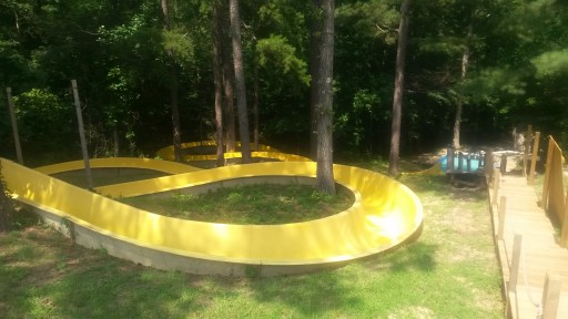 Concrete pull thru site cracked in multiple pieces, but was still semi-level. Pull thru spaces were tight. Rained really hard, but drainage was good. The front entrance was badly rutted, but they were adding gravel to fix. The water slide was fun so probably would stay 1 night again