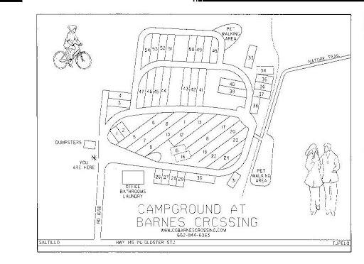 Late night walk-in arrival a few days ago. Typical sign in but well detailed map with arrows direction in and out of park. Stayed at site #48 pull thru with plenty of room for 34’ MH with toad. Very very very clean bathrooms and laundry. Will stay again.