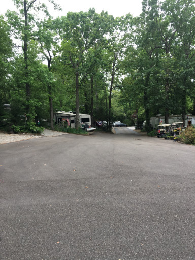 Nice park level pull throughs despite being hilly and generally wooded. Very new and clean bathrooms. Very high marks.
