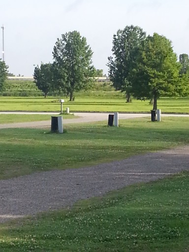 Check the electric at your site prior to setting up or paying. On other review sites some reviews mention setting up to find no power at the post. At my site, 23, the power worked but the inside of the electric box was a frightening jumble of wires and open connections. My surge protector didn't give me any warnings so we stayed, but it was raining and I'm pretty sure you could get shocked in that box on a wet day. I've included photos of electric boxes from 2 sites. Others looked OK, but since folks reported power problems & I found a shambles I'd check carefully before putting out slides or putting my money in their metal lock box from which you can't get it back. That said, it's a nice overnight spot if your power works, and a nice walk in the park across the street. Note there are no restrooms and no staff present.