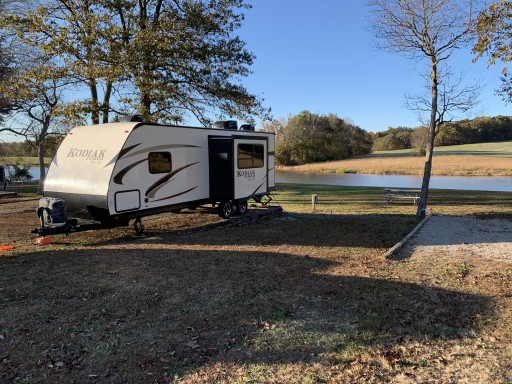 I stayed here on a beautiful fall day and stayed in one of the lakeside spots. It was late evening when I arrived, all sites were super easy to back in. Upon set up I had awesome views of deer grazing in fields across the lake. Legend has it this place used to do live country music on weekends which had died off years ago. The value is awesome $15 for one night or $25 for two nights. The view was nice, only reason I gave 4 stars is hey road noise and nothing against the campground. It’s very convenient to Jackson, MO