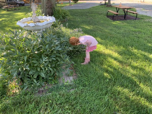Shade, free veggies, full hookups, welcoming folks, campfires, s’mores, banjo (instrumentals) are welcome. What a wonderful peaceful campground. I’d like to add photos, but don’t see how to. They purchased this Campsite in 2013 and did alot of upgrading (got rid of 7 walnut trees) added sugar maples, maples, king crimson. Every campsite has a picnic table, this Campsite has a community grill (blackstone)