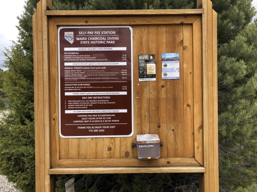 $15/night New benches, very clean, nice sites. Only reason 4 star because no cell service. The Charcoal Ovens are worth seeing. 7 miles dirt road to get there.