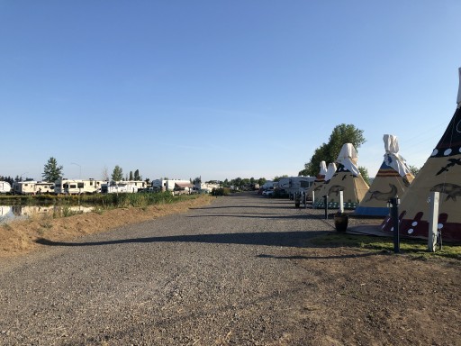 A large spot, level and you’re being escorted to your site. Upon arrival, we received a treat for the cat as well as mints for us. Clean bathroom and Showers. We did not used the Laundry but seemed nice. We loved the RV washing spot. Large ponds for those who like it. Close to Highway and Eugene. Would recommend it !