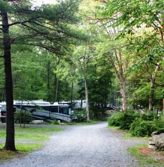 We stayed 3 nights. The camp is immaculate, sites are nice size and very well maintained. All sites are partially wooded so you have semi privacy. The swimming pool is the nicest I have seen at a campground. They also cater to folks with dogs, huge dog park and poop cleanup stations all over. Checkout the 60+ wood carvings around camp.