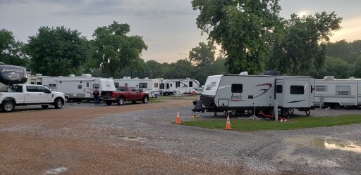 Rainy and cold when we arrived but staff not only led us to our site but hooked it all up! Couldn’t ask for nicer people. The site wasn’t real spacious but big enough. Went to lodge to eat and were entertained with a great CW band. Best homemade chicken noodle soup ever! Really talented folks in the band with a fiddle-playing gal who Buck danced like crazy. Will stay again if we are in Nashville area.