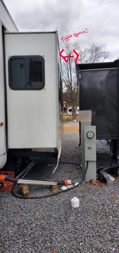 Yes this park is tight but, the people are so nice and friendly! When we checked in we were cold and anxious to plug in for heat. They greeted us with warm cookies. Absolutely made our day! We'll be coming here as much as we can!