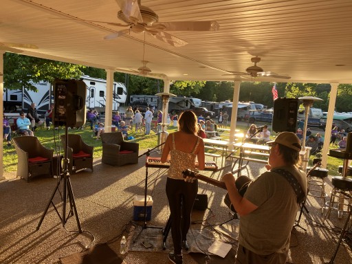 This was our first stay in an RV Resort. Extremely helpful staff, they took us to our spot and showed us how to get all hooked up! Dinner was delicious and the live music on the back patio was very nice! Hope the rest of our trip goes this well!
