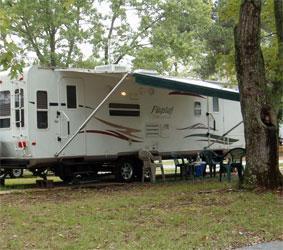 We stayed 1 night here in a 28' travel trailer. The park is quiet, very well-kept & clean, mostly mobile homes with the RV sites between the homes (which wasn't a problem). Our site was very very long and wide and shady. I had called ahead to get a site since we were arriving after the office closed. Clear information left on the door. Our 30-amp outlet had a wiring prob, so called mgrs, they came by right away with a 50-amp adapter so we could use that outlet, which worked fine (plan B was to move us), and made note to call electrician. Nice area, great service, clean quiet park, huge campsite - what more could you ask? Definitely would stay here again!