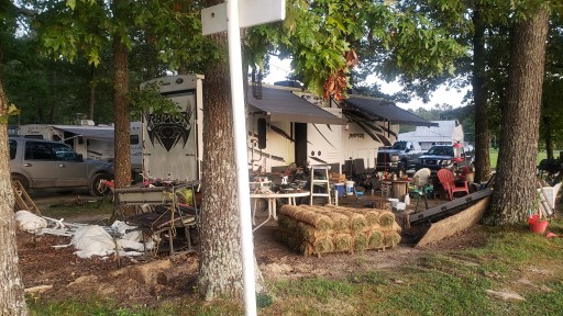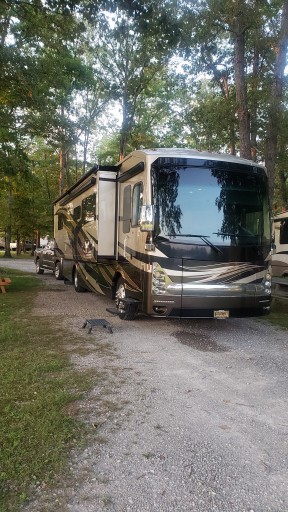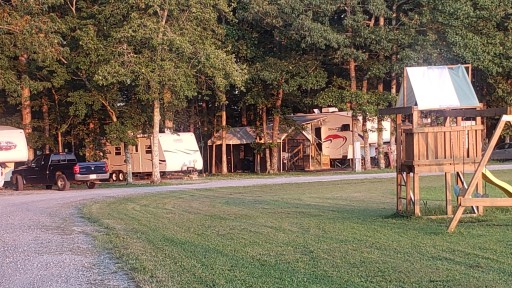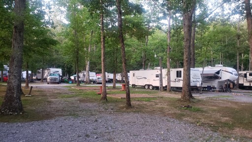 After 8 hours on the road and traffic back ups in Atlanta and Chattanooga we were ready to stop. We didn't want to pay the $50 for the KOA so we opted for this location. There were some permanent campers and a few over nighters like us. It was clean and had a large field in front. If you have a large rig (ours is 38 class A) or don't like pulling thru tight spaces don't come here. The driveway entrance is tight and so are the interior streets due to the number of trees. However those trees keep the motor home cool. Also the utilities and dumps are almost in your neighbors area with wi fi being weak.