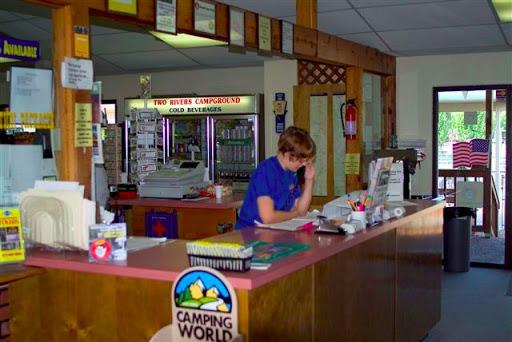 I must have missed the two rivers. Didn't even see one. Didn't like that you have to have an extension for you sewer if you want to use the full hookups. Two camp stores on either side have big displays as well as the camp store. $40.00 and then you get to figure out storage and may never use it again. Bad layout.