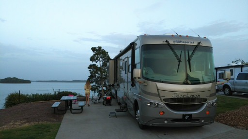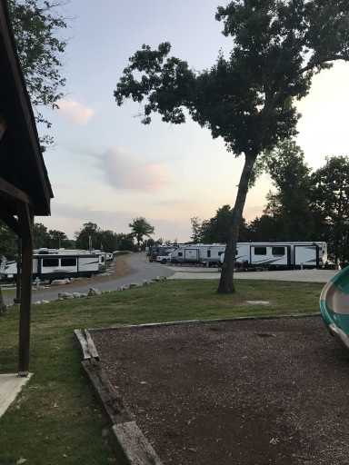 Very nice RV resort. All sites are on level cement pads. Bathrooms and shower houses very spacious and clean. Both gates and bathhouses require passwords for access. Many accesses to lake as well as rentals for water sports.