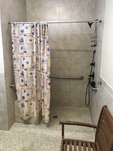 SHOWER. The shower has no place to sit and no place for clothes to hang.they were clean.