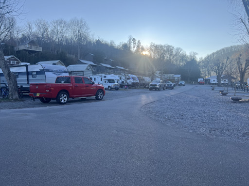 Good location if you want to be close to everything. Spots are a little small and tight but stayed during the off season so wasn’t bad. Stayed in spot #1 which has an overflow sight in front of it. Used it for parking. Was right on the water which also put us close to the Main Street going though Pigeon Forge so could hear all the traffic noise. Nice bathhouse, arcade and store. They also have trolley stops in the park to take you around town.