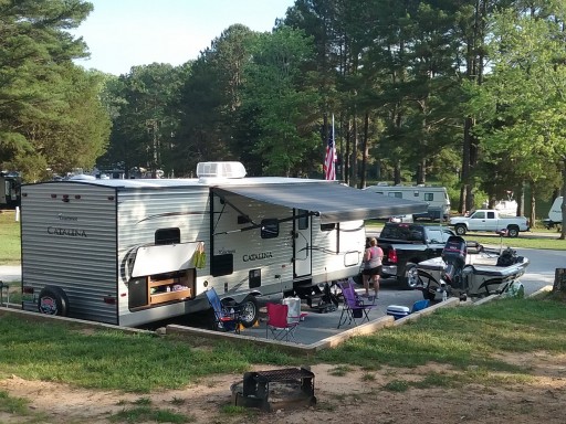 Stayed 4 nights. Sites were a bit close together but not obnoxiously so. Some sites have sewer, some don’t. Basically, if the site is out on the peninsula, it doesn’t. Our site 14 had sewer, sat up a bit higher than the peninsula sites with a nice view of the lake. WiFi was adequate but spotty at times. Verizon/Spectrum Mobile reception was good. We got no TV channels at all on our antennae. Wife says the bath house was ‘Ok’. We think they rent kayaks but is was always hard to tell if the office was open, or closed for COVID precautions.