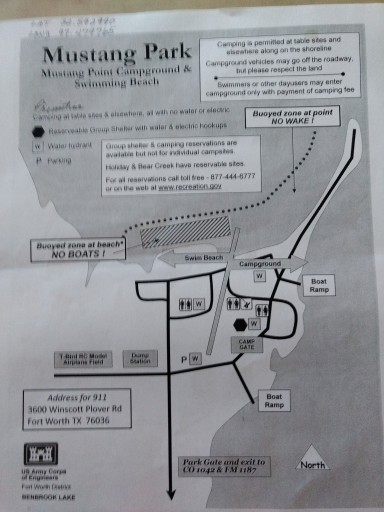 Signage on all COE lake facilities here is spotty and locations on Google maps in the app are frequently inaccurate and especially so for Mustang Park.