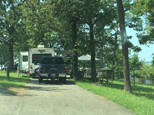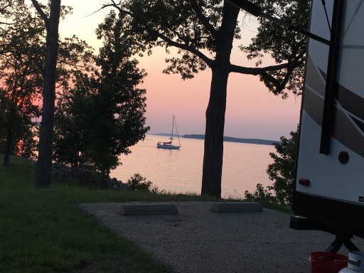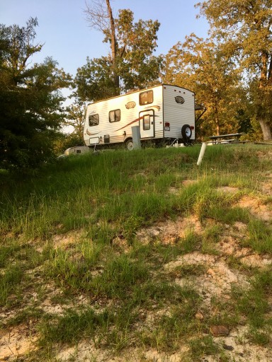 Sites are level and all have a view of the lake, even those not right on the water. Not as much privacy as most COE campgrounds we've been to ... and we do lots if them around the country. The way most sites are angled, if you have a neighbor, either you're backed up to their picnic table, or they're backed up to yours. Bathrooms are small, 1 stall, 1 urinal, 1 shower and 1 sink on a homemade cabinet. They were clean, but no A/C, and I think no heat. Not even any air vents for cross ventilation. There is a playground for the kids that seemed pretty nice. Several other campers had boats so I assume there is a boat launch nearby. Staff were very friendly and helpful at check in. I usually give 4 stars if the CG is what's expected, reserving 5 stars for going over and above expectations. 3 stars here because, though a nice cg, it was below what I've come to expect from a COE cg. $28 / $14 with senior pass.