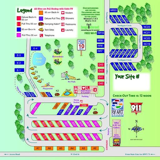 This KOA has all the amenities, but is very plain Jane. Right next to I30 so is noisy all night. Spots are level. Check in easy since I used the KOA app. Prices average.