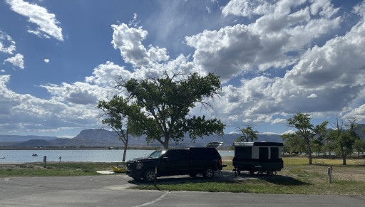 Sites are widely spaced, very little shade, bring water shoes to get in the lake as the approach is Rocky. Bathrooms are clean, showers, are great. Every weekend is full so you have to reserve for another $8/night. Glad to have power to run the A.C. as temps were over 90°